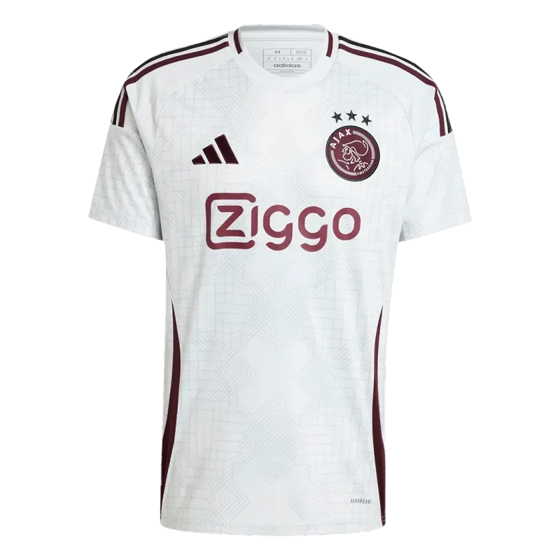 Description about theAjaxjersey: The Ajax jersey is designed in gray with the famous team badge proudly displayed in burgundy on the chest. Moreover, the iconic three stripes on thisAjax jerseyusing the burgundy-black-burgundy tricolor of the Amsterdam flag subtly adorns the camisetas futbol. Bright colors have been applied to this light coloredAjax jerseyto bring out a clean and designerAjax jersey. The design ofAjax jerseyis inspired by the city’s famous ‘XXX’ symbol and Art Deco architecture, celebrating this unbreakable bond.Ajax jersey’sfitted silhouette embraces the contours of the body and is perfectly suited to your daily activities. The design of the camisetas futbolis both stylish and modern, reflecting the vibrant and bold spirit of the Ajax Amsterdam team.