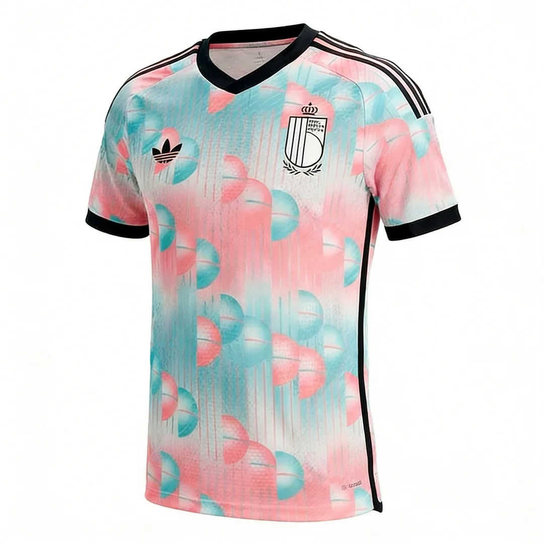 The Belgium 2026 World Cup Home Jersey perfectly embodies the essence of the Red Devils. This Belgian jersey features a deep red base with gold and black details, symbolizing courage and determination. Its unique design cleverly blends tulip shapes with flames, creating a fiery devil motif that celebrates the bold spirit of Belgian football.