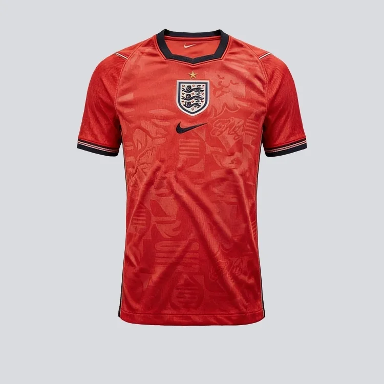 England Jersey Introduction: New England 2026 The England Euro 2026 away kit represents a significant departure from previous England kits. This affordable England Euro 2026 kit features England's classic "speed red" base with navy and white accents, and incorporates a delicate jacquard pattern of lions and stars. The kit features a specially designed collar with a rounded navy blue cuff. While the England kit, authentic England kit, and England long-sleeved kit are all replicas, they are virtually identical to the kits on the official website. These kits are made of a skin-friendly, smooth, breathable, and lightweight fabric.