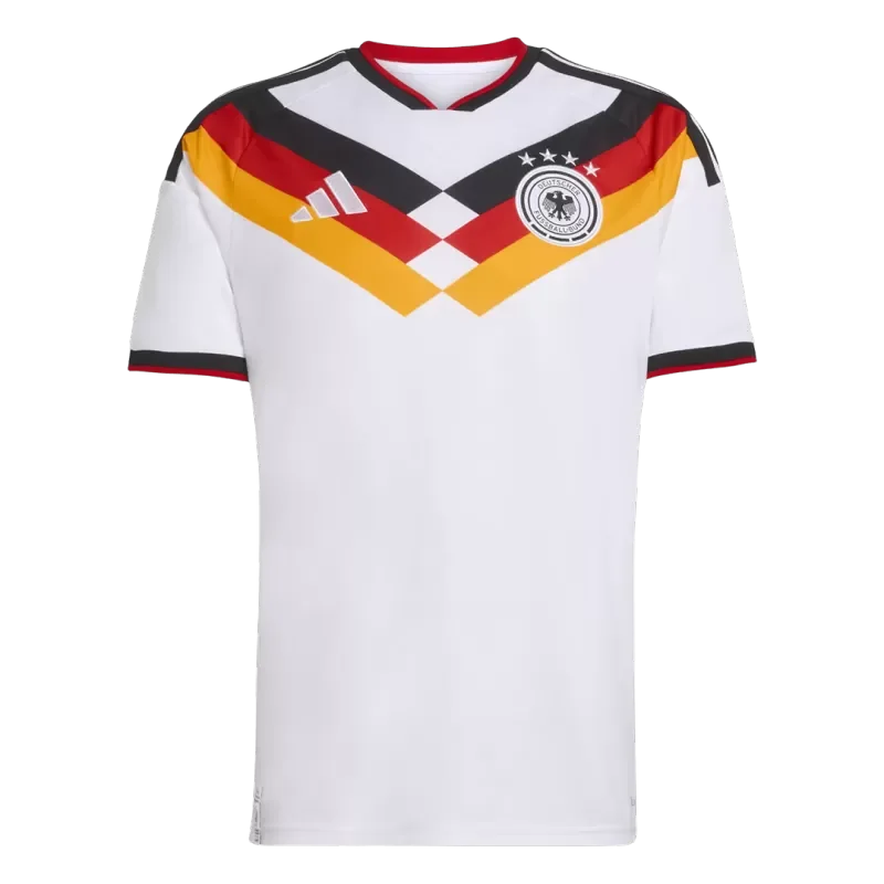 Germany Home Soccer Jersey World Cup 2026 – A Tribute to ChampionsClassic Heritage, Modern GloryTheGermany Home Soccer Jersey World Cup 2026celebrates legacy and victory, paying homage to the iconic1990 and 2014 World Cup-winning kits. Featuring aclean white basewithblack, red, and yellow accents, thisGermany jerseyshowcases a boldtricolor V-designrunning from the shoulders to the chest—symbolizing unity and strength. Thespecial DFB authentic badgeandAdidas “Adolf Dassler” logoadd an exclusive touch to this modern classic.Symbols of TriumphAbove the DFB crest, four stars proudly display the years1954, 1974, 1990, and 2014, honoring Germany’s World Cup victories. Crafted for comfort and style, thisGermany soccer jerseyis ideal for both fans and players who share Die Mannschaft’s winning spirit. Cheer for stars likeIlkay Gündoğan,Jamal Musiala, andKai Havertzwith this high-qualityreplica jerseyavailable atGogoalshop—offering100% official name and number customizationfor everyfan jersey.Where to Buy Cheap Soccer Jerseys?Shop now atGogoalshop, your trusted destination for authentic andcheap football jerseys. Order theGermany jerseytoday to enjoy15% off your first purchase! Level 2 and above members getfree shippingon all orders. Don’t miss your chance—wear history, pride, and victory with Germany’s 2026 home kit!