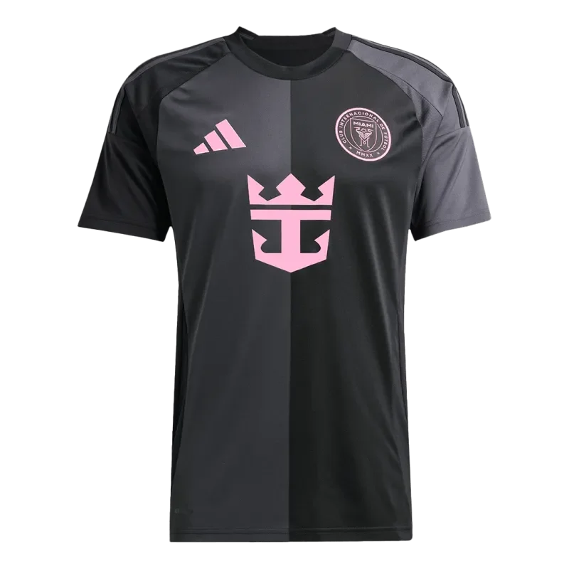 Details of the jersey: Description about the Inter Miami Away Soccer jersey: Inter Miami CF Away Soccer Jersey 2025 OUT NOW! Inter Miami CF jersey is designed with black as main color like the 2024 season, then complementing with gray and pink accents. The 2025 Inter Miami CF jersey celebrates the vibrant South Florida culture and is an Inter Miami CF jersey that reflects the club’s ambitions. What’s more, the Inter Miami CF camiseta futbol is designed into half gray and half black, and the iconic three-stripes on the shoulder are also switched along with the half-and half color scheme. We can see the motto ‘FREE TO DREAM’ is embroidered on the back of Inter Miami CF camiseta futbol. It’s time to show your support for the iconic football club with this stylish and high-quality Inter Miami CF jersey. The whole Inter Miami CF kit is completed with matching white shorts and socks.