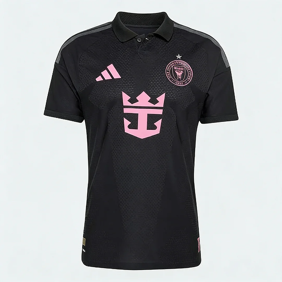 Details of the jersey: Description about the Inter Miami Away Soccer jersey: Inter Miami CF Away Soccer Jersey 2025 OUT NOW! Inter Miami CF jersey is designed with black as main color like the 2024 season, then complementing with gray and pink accents. The 2025 Inter Miami CF jersey celebrates the vibrant South Florida culture and is an Inter Miami CF jersey that reflects the club’s ambitions. What’s more, the Inter Miami CF camiseta futbol is designed into half gray and half black, and the iconic three-stripes on the shoulder are also switched along with the half-and half color scheme. We can see the motto ‘FREE TO DREAM’ is embroidered on the back of Inter Miami CF camiseta futbol. It’s time to show your support for the iconic football club with this stylish and high-quality Inter Miami CF jersey. The whole Inter Miami CF kit is completed with matching white shorts and socks.