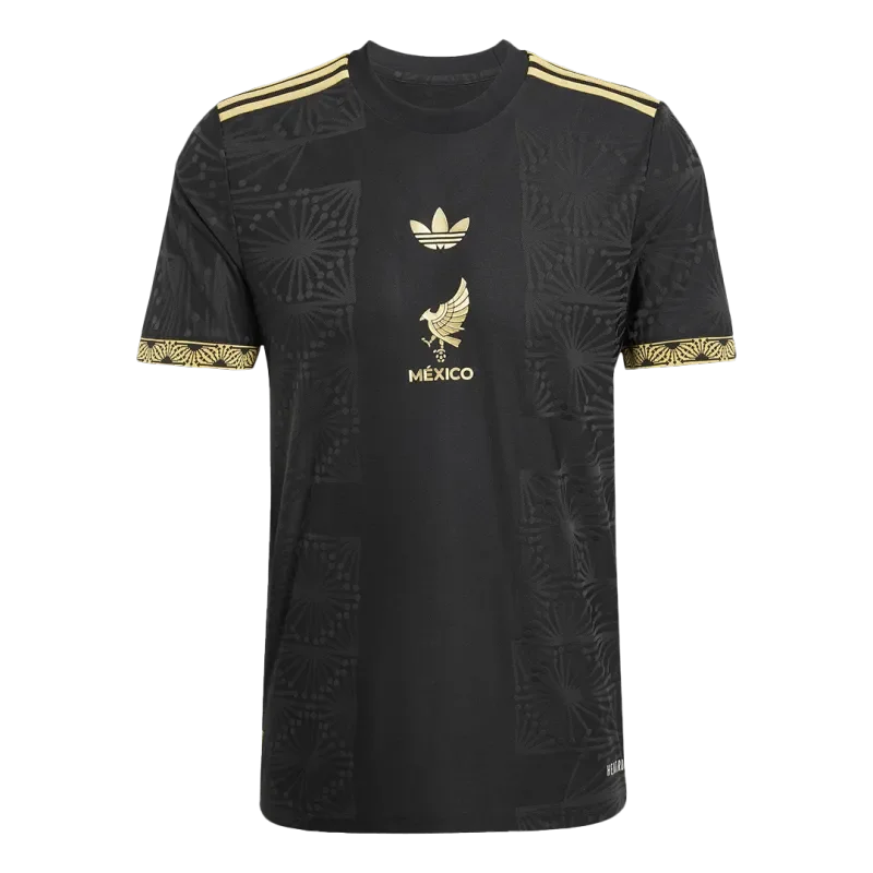 Inspired by traditional mariachi clothing and the architectural beauty of Aztec pyramids, thisMexico authentic jerseyfeatures intricate golden details on a sleek black base. The jersey also showcases a distinctive pixelated font for the numbers, completing the modern yet cultural aesthetic of this iconic Mexico Jersey.