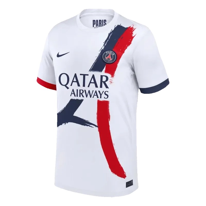 Description aboutthePSG jersey: ThePSGjersey24/25 Away is truly a tribute to the rich history and heritage of Paris Saint-Germain. Drawing inspiration from the iconic silhouette of the Eiffel Tower, thePSGjerseyfeatures two prominent red and blue stripes against a clean white background. This design pays homage to a renowned Club shirt that was worn by Parisians during the 1990-91 and 1991-92 seasons, symbolizing the club’s proud legacy. With a nod to the past and a focus on innovation, the 24/25 Away kit embodies the spirit of the club’s new generation.PSGjerseyrepresents the blending of tradition and modernity, showcasing the evolution and progress of Paris Saint-Germain. This exceptional kit will be worn not only by the men’s and women’s professional teams but also by the academy teams, uniting the entire Paris Saint-Germain community under a shared emblem and identity. It serves as a symbol of pride and unity for players and fans alike, encapsulating the club’s storied past and inspiring its future endeavors.
