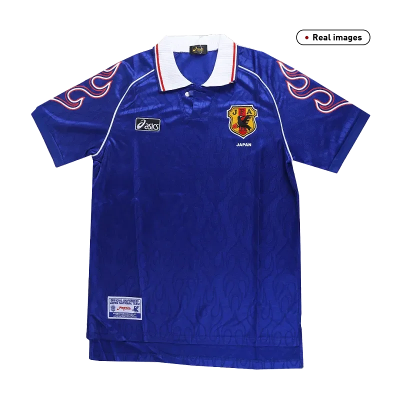 Description about theJapanjersey: Retro Japan Jersey Home 1998 By Asics OUT NOW! The nation’s first ever World Cup appearance was in 1998, where Japan lost all their games. The first two fixtures went 1–0 in favour of Argentina and Croatia, and the campaign ended with a 2–1 defeat to Jamaica. Japan impressed, however, as all three defeats were only by a one goal margin. This is the Japan Jersey 1998 worn by the Japan national football team for the 1998 World Cup. The Japan Jersey uses their iconic blue in colour. And we can see Japan camiseta futbol 1998 is embellished with flames on the shoulders, a design that shocked the world at that time. In conclusion, this Japan Jersey is inspired by this historic moment, it’s no doubt that 1998 retro Japan camiseta futbol is a tribute to the spirit and passion of Japanese football.